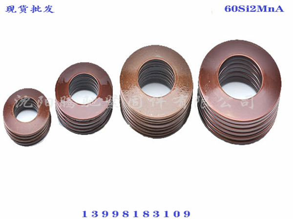 3.用同样的碟形弹簧采用不同的组合方式,能使弹簧特性在很大范围内变化。可采用对合、叠合的组合方式,也可采用复合不同厚度,不同片数等的组合方式。